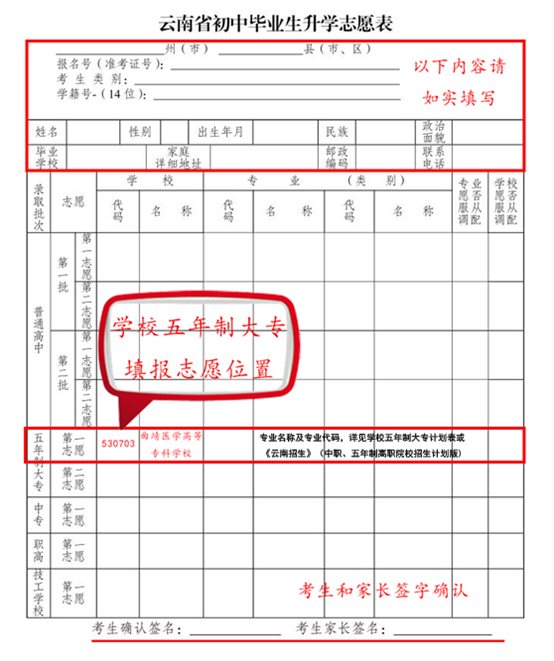 填報(bào)志愿:按當(dāng)?shù)亟逃只虺踔挟厴I(yè)要求填報(bào),最終以云南省招考頻道中的考生志愿為準(zhǔn)。