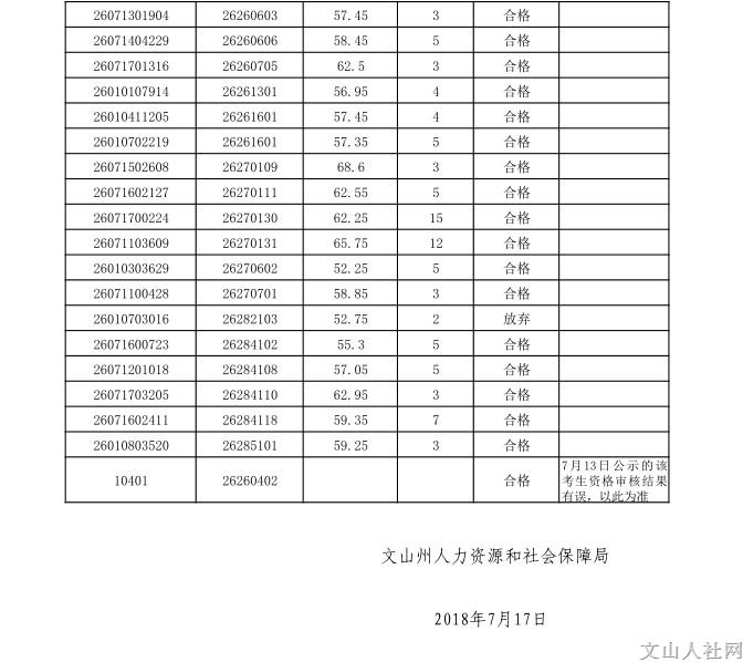 2018年文山州事業(yè)單位招聘工作人員資格復審結果
