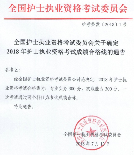 關于國家確定2018年護士執(zhí)業(yè)資格考試成績合格線的通告