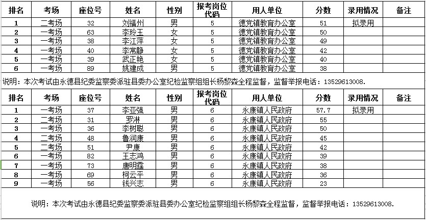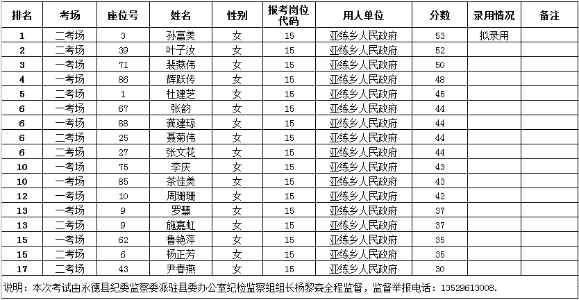 永德縣2018-2019年度大學生志愿服務西部計劃地方項目志愿者招募筆試成績 永德縣大學生志愿服務西部計劃 項目管理辦公室 2018年7月19日