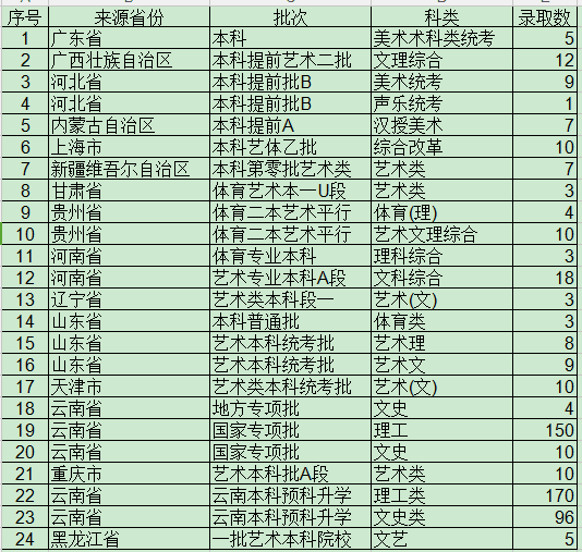 近期我校集中錄取藝術(shù)類、體育類、國家專項計劃、地方專項計劃考生。下表所示范圍的考生可以在本網(wǎng)站查詢是否被我校錄取。我校將于錄取結(jié)束后統(tǒng)計文化分、專業(yè)分情況。各位考生可電話查詢錄取最低分情況。祝你金榜題名!