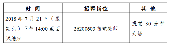 其他有關(guān)要求:面試考生穿著運(yùn)動(dòng)服、運(yùn)動(dòng)鞋,自帶籃球教學(xué)課所需教學(xué)器材。