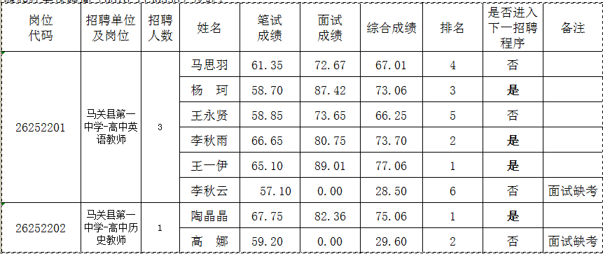 根據(jù)《2018年文山州事業(yè)單位公開(kāi)招聘工作人員通告》要求,我縣于2018年7月21日舉行2018年事業(yè)單位公開(kāi)招聘工作人員馬關(guān)縣崗位面試,現(xiàn)將考生綜合成績(jī)公示如下: