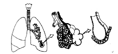 2.下圖為肺的內(nèi)部結(jié)構(gòu)示意圖,圖中所示肺泡外包圍著毛細(xì)血管,肺泡壁和毛細(xì)血管壁都很薄,由一層上皮細(xì)胞構(gòu)成,這有利于 ( )