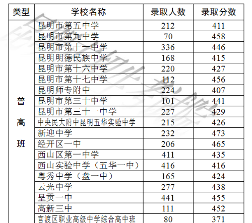 2018年昆明市主城區(qū)普高錄取公告