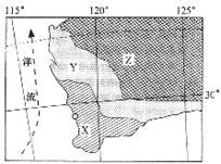 讀世界某區(qū)域海洋與陸地自然帶分布圖,回答21—23題。