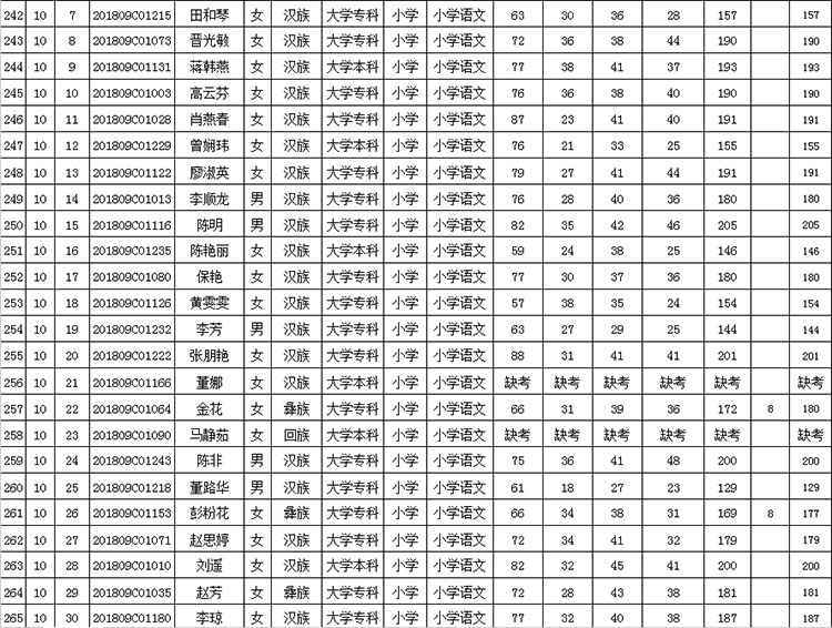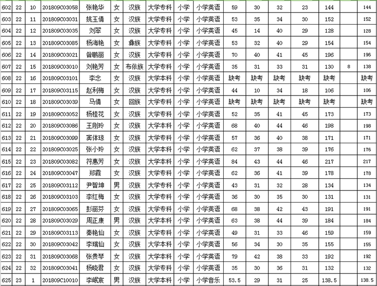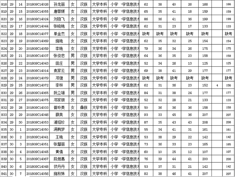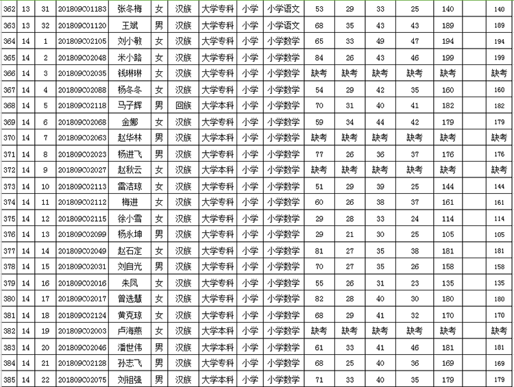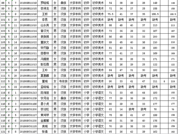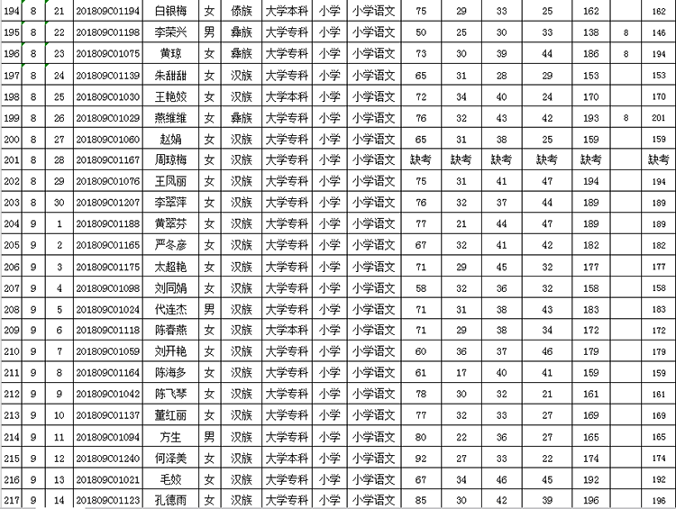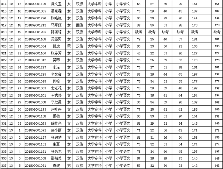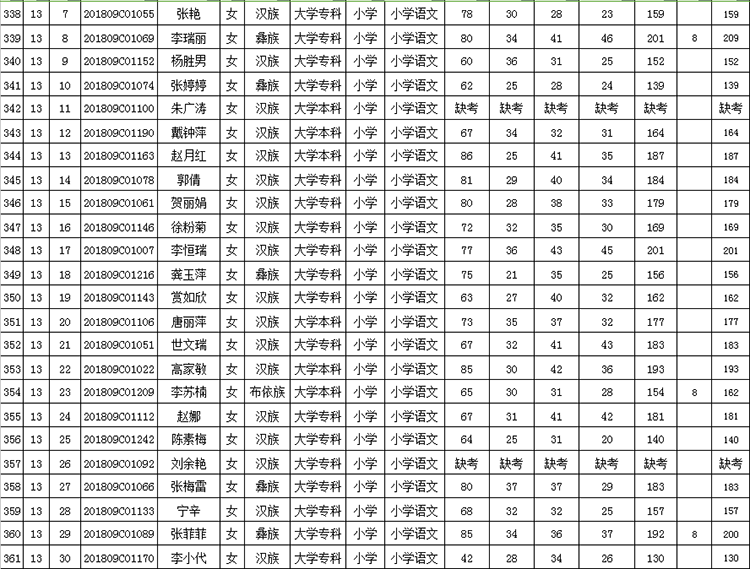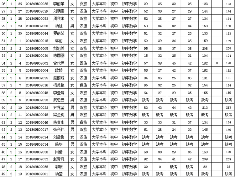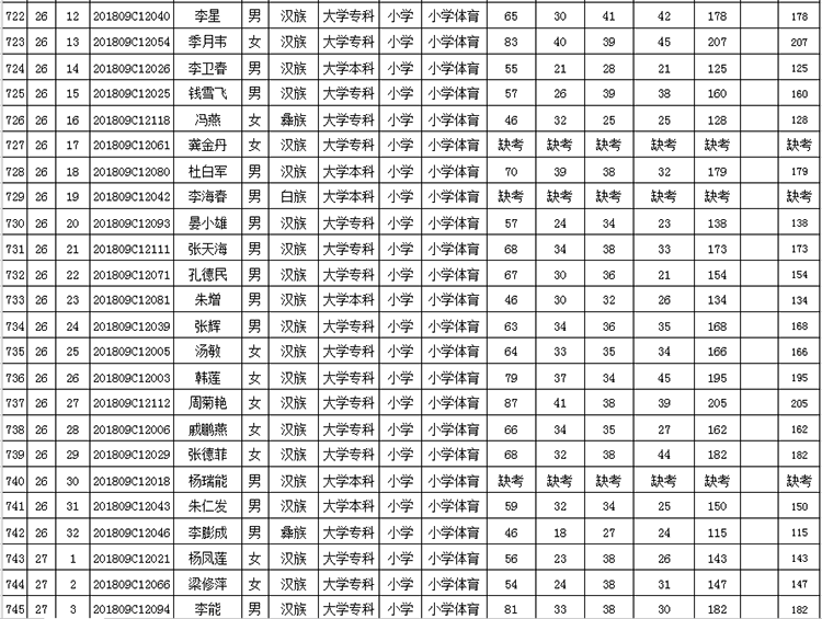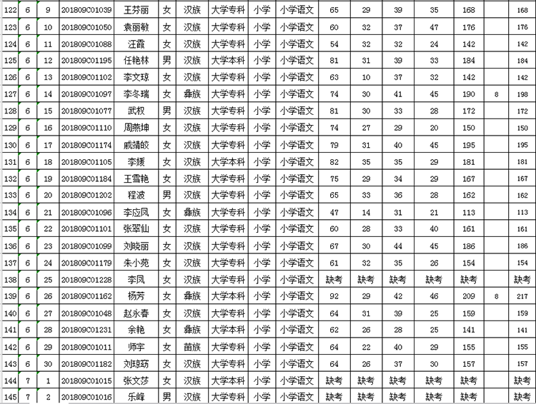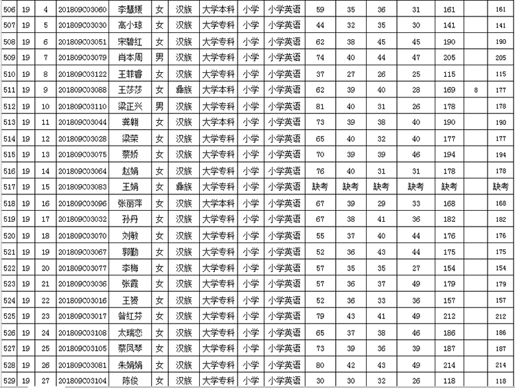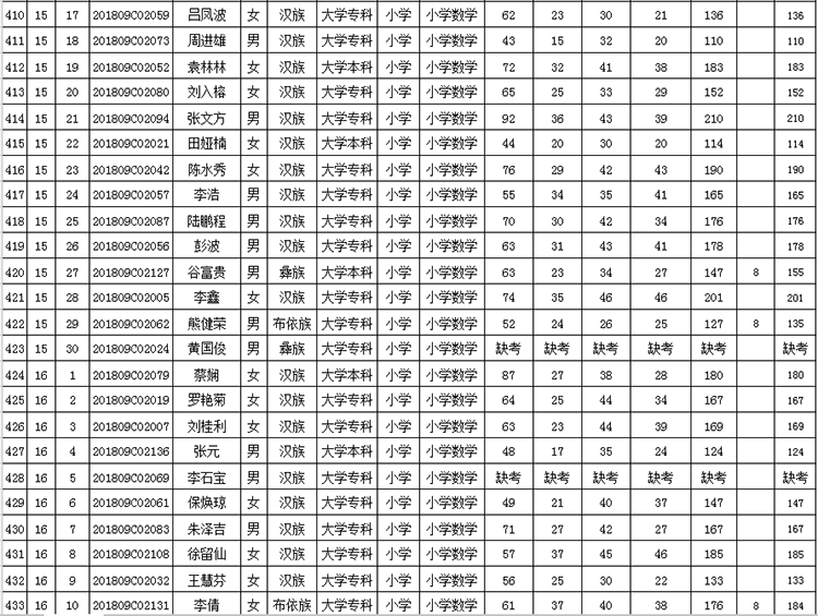 曲靖市羅平縣2018年公開招聘教師成績公告