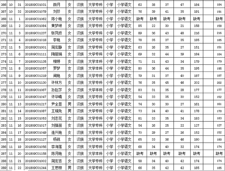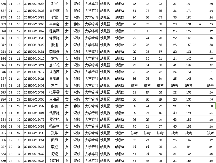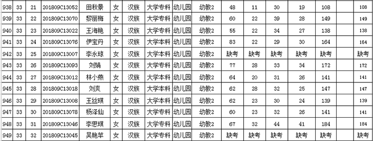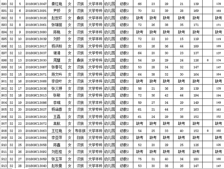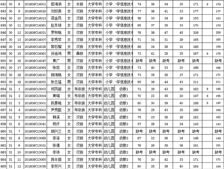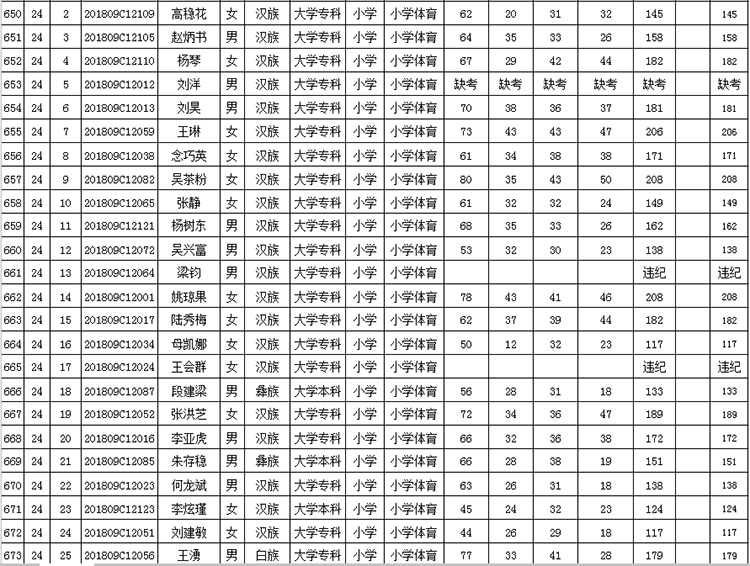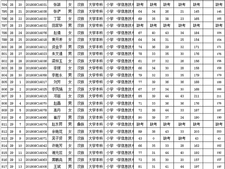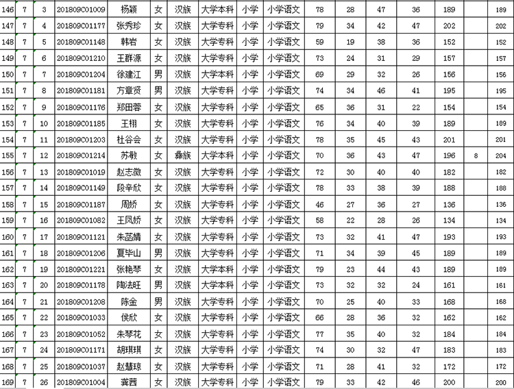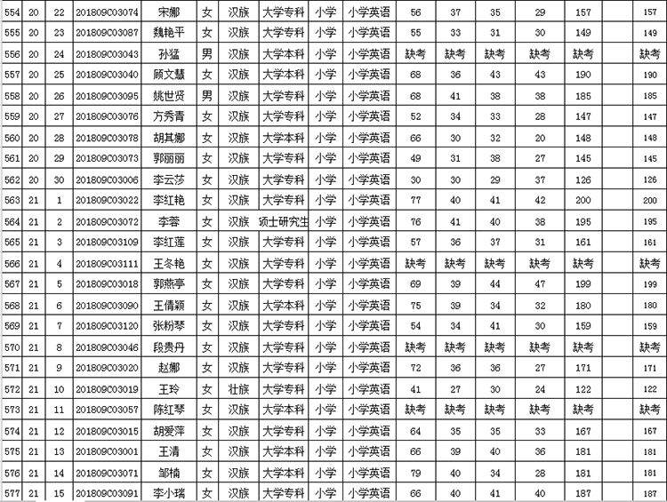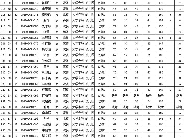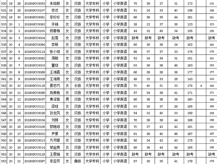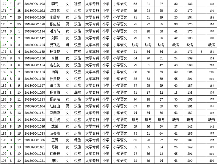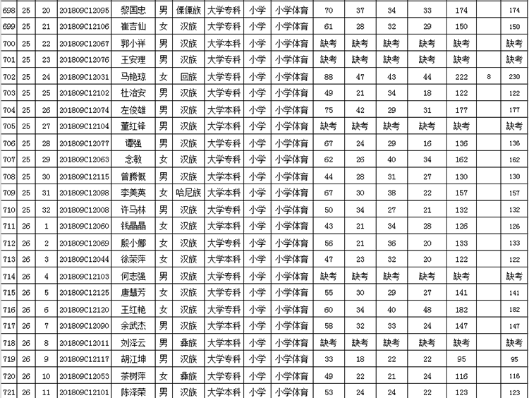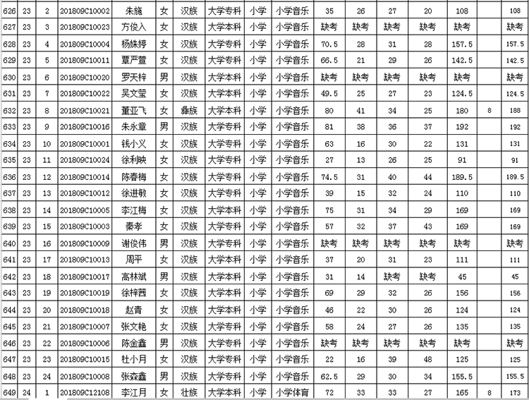 曲靖市羅平縣2018年公開招聘教師成績公告