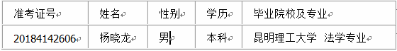 因煙草法學(xué)類擬錄用人員戴鏡芬(準(zhǔn)考證號(hào):20184142601,性別:女,學(xué)歷:研究生,畢業(yè)院校及專業(yè):云南大學(xué)經(jīng)濟(jì)法學(xué)專業(yè))自愿放棄到大理州煙草專賣局(公司)工作。按照《云南省大理州煙草專賣局2018年大學(xué)畢業(yè)生招聘實(shí)施方案》的規(guī)定,擬錄用人員主動(dòng)放棄錄用資格的,取消錄用資格,順延至下一名。因此,按照煙草法學(xué)類綜合成績從高到低依次擬補(bǔ)錄用楊曉龍。經(jīng)體檢合格,現(xiàn)對(duì)擬補(bǔ)錄人員進(jìn)行公示。
