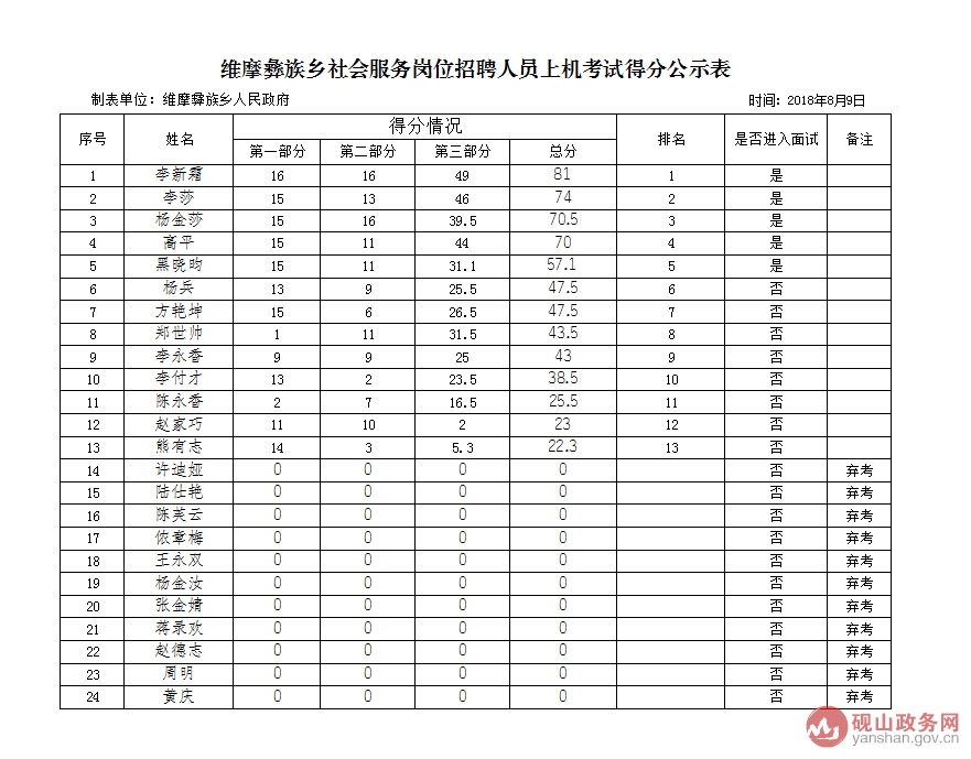 維摩彝族鄉(xiāng)扶貧辦購買社會服務崗位公開招聘機試成績公告