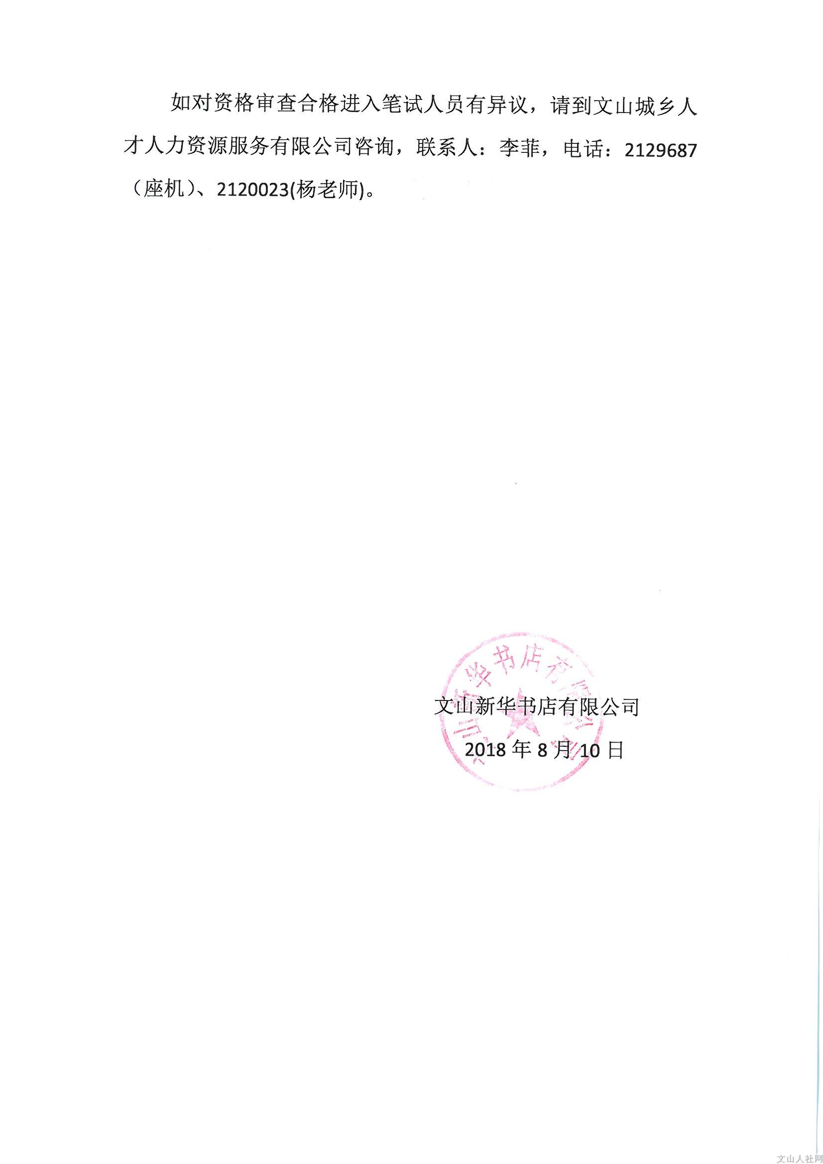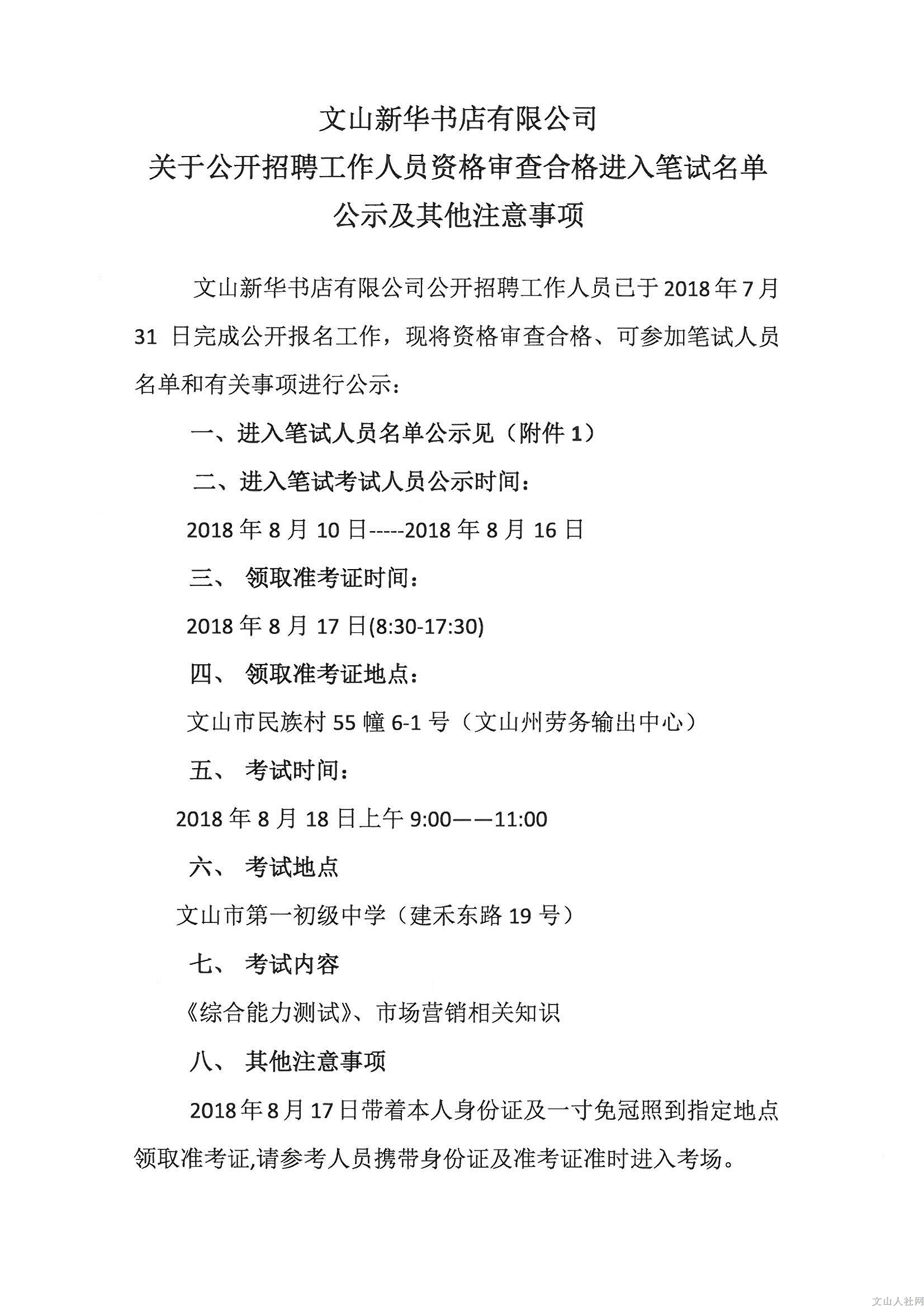 文山新華書(shū)店有限公司公開(kāi)招聘工作人員資格審查合格進(jìn)入筆試名單公示