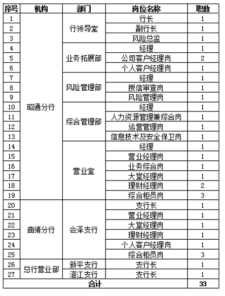 云南紅塔銀行昭通分行、曲靖會澤支行的籌建工作正在進(jìn)行,同時為滿足玉溪市部分縣域支行管理需要,現(xiàn)面向社會公開招聘33人,誠邀業(yè)界精英加盟,將智慧、熱情和創(chuàng)造力帶到云南紅塔銀行,與我們共同創(chuàng)造美好的未來!