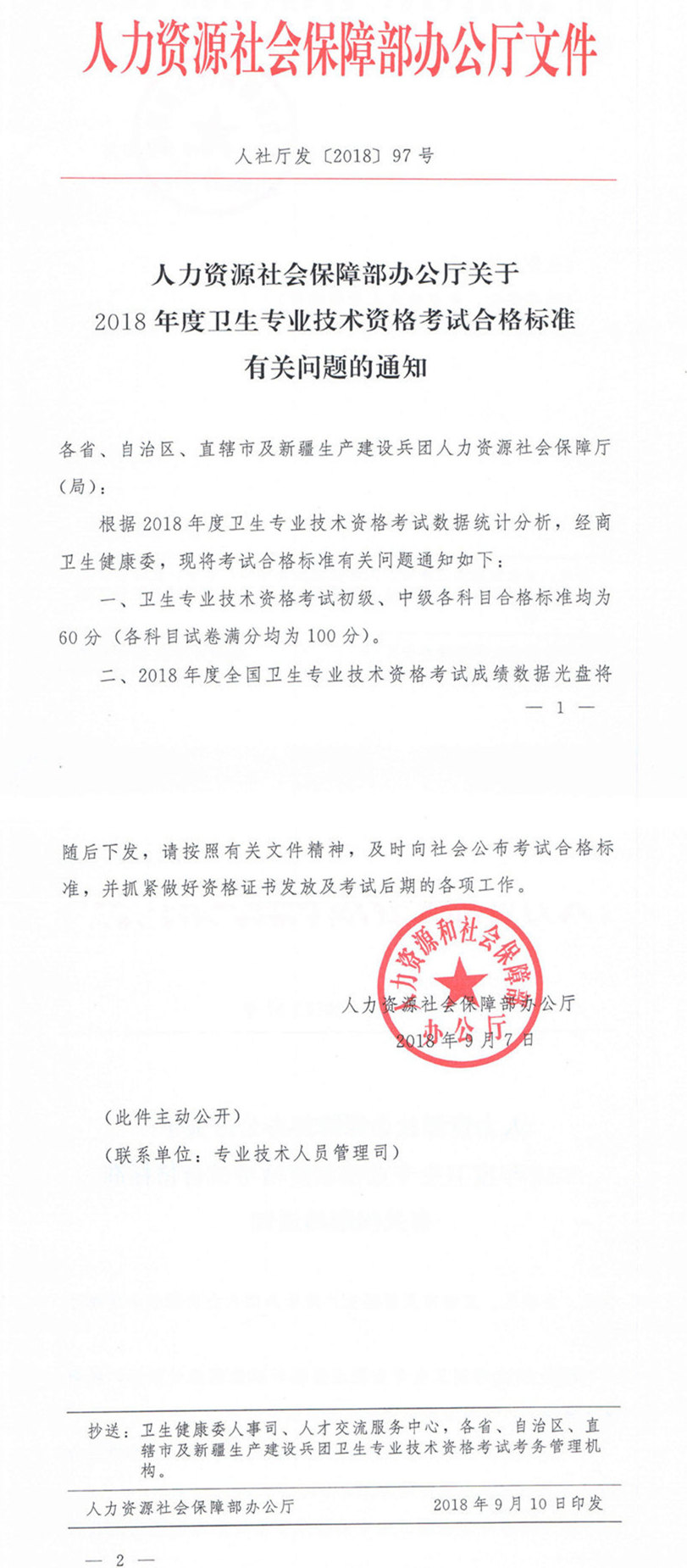 關(guān)于2018年衛(wèi)生專業(yè)技術(shù)資格考試合格標準有關(guān)問題的通知
