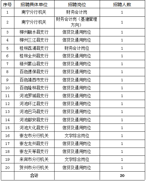 1、招聘單位為廣西區(qū)分行轄內(nèi)二級(jí)分行和縣級(jí)支行。