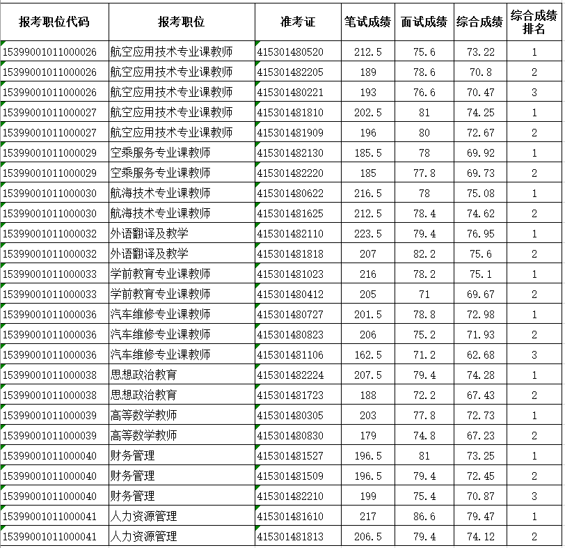 2018年云南交通技師學(xué)院招聘工作人員面試成績(jī)公示