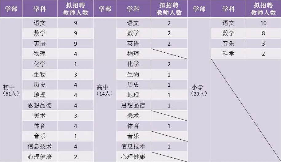為滿足社會對優(yōu)質(zhì)教育資源的需求,根據(jù)學校辦學發(fā)展需要及人才儲備計劃,今年,我校建設路校區(qū)、昆明湖校區(qū)及潤城學校面向省內(nèi)外招聘德才兼?zhèn)涞膬?yōu)秀教師,具體如下: