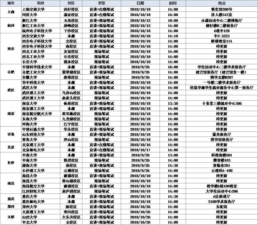 ●筆試與面試城市 院校宣講日期