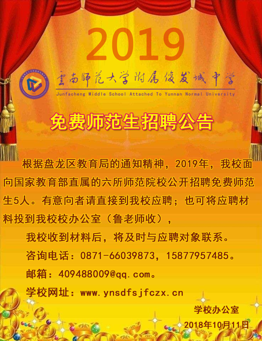 云南師范大學(xué)附屬俊發(fā)城中學(xué)2019年招聘公告