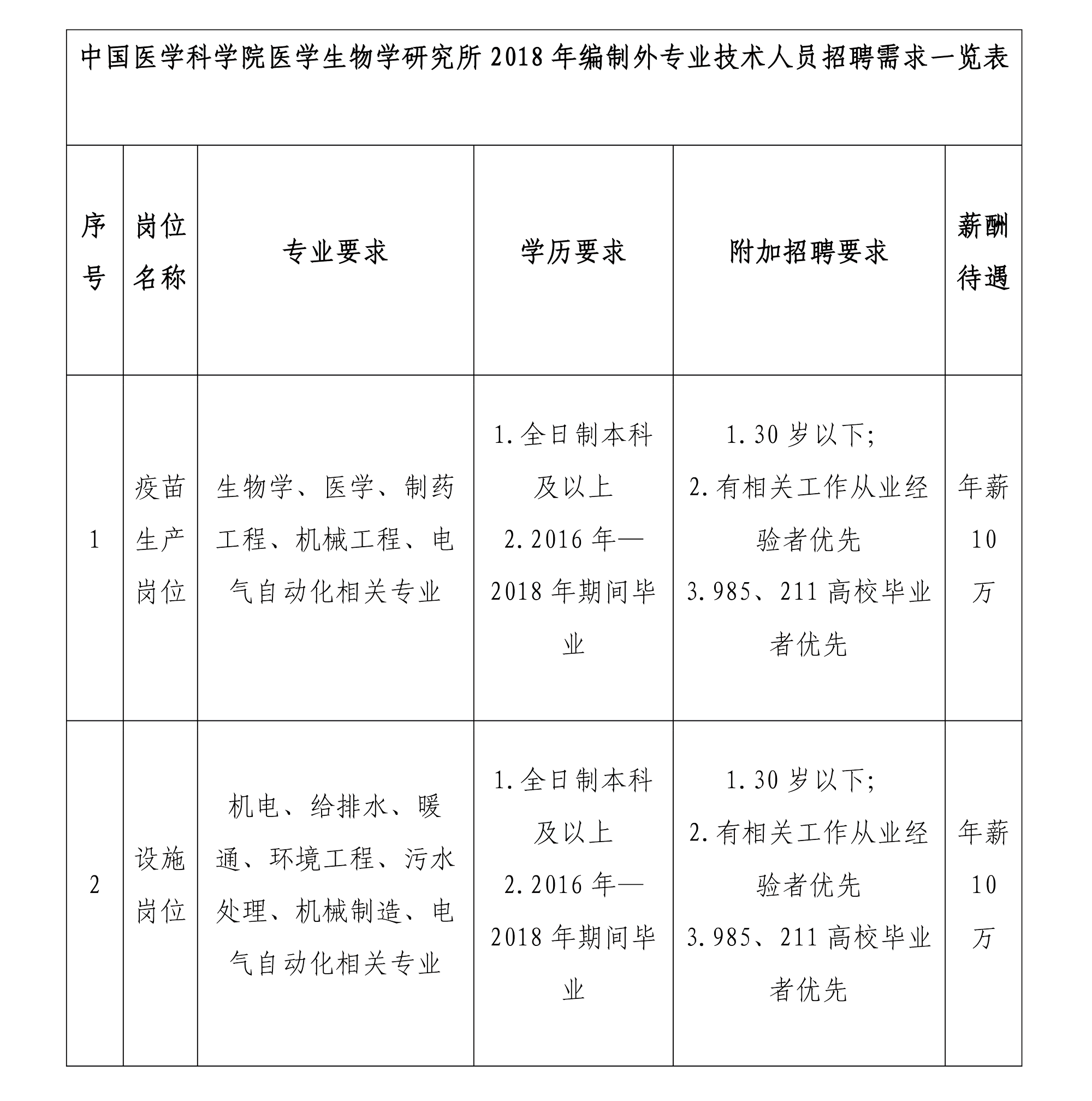 2018年秋季編制外專業(yè)技術(shù)人員招聘公告
