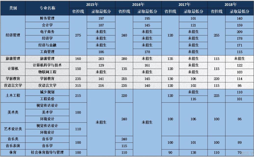商學(xué)院2015-2018年專(zhuān)升本錄取最低分