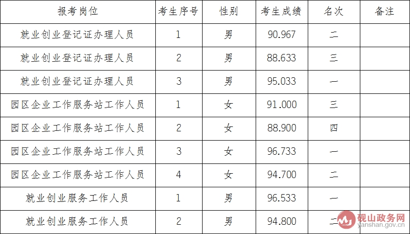 硯山縣人力資源和社會保障局招聘公益性崗位面試成績公示
