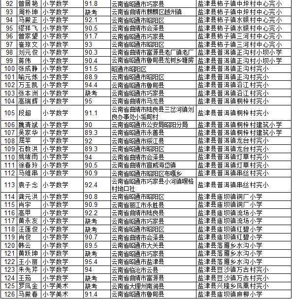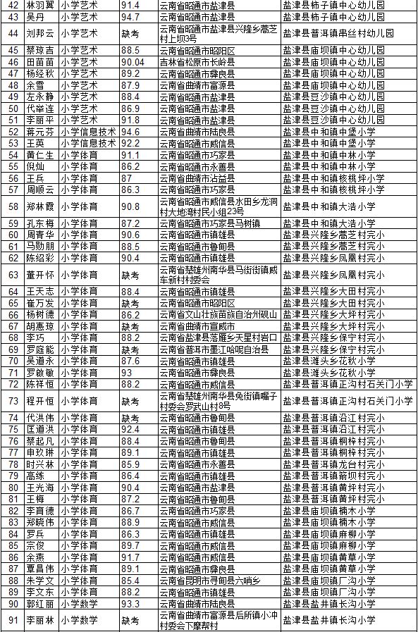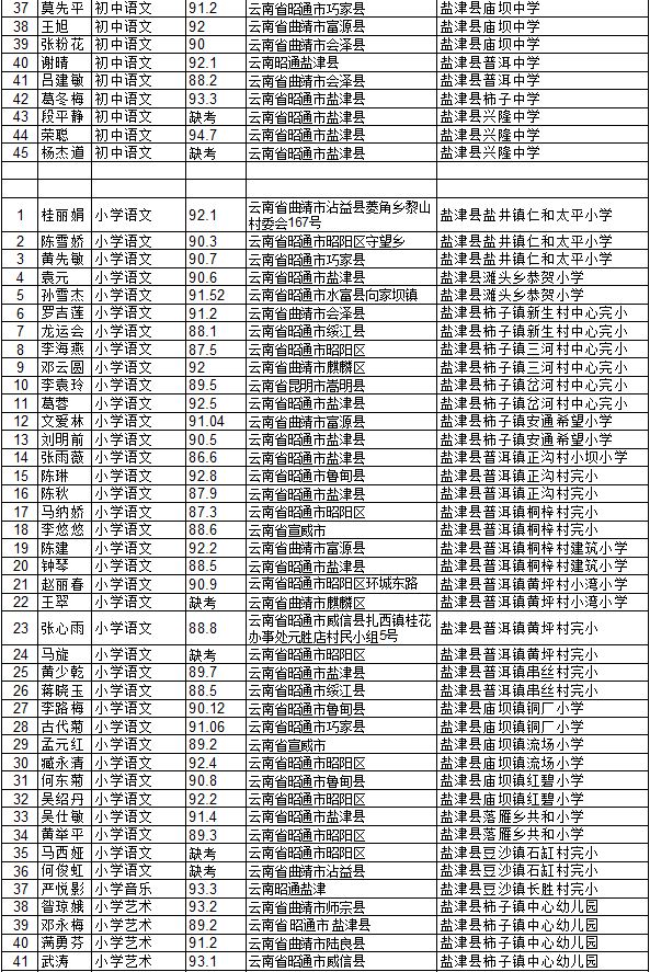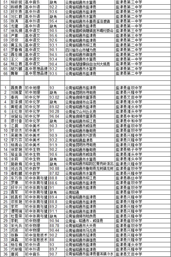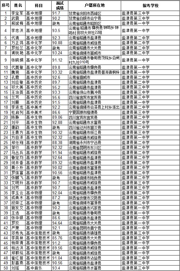 昭通市鹽津縣2014年特崗教師招聘面試成績(jī)公示