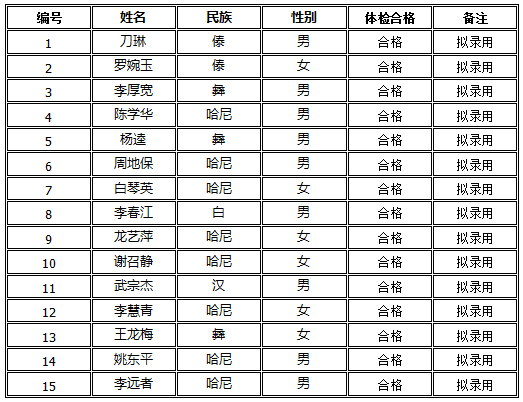 元江縣政務(wù)服務(wù)管理局政務(wù)服務(wù)中心輔助性崗位工作人員擬錄用人員公示