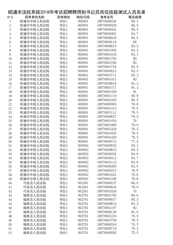 附件:云南省昭通市法院系統(tǒng)2018年公開考試招聘聘用制書記員崗位技能測試名單。
