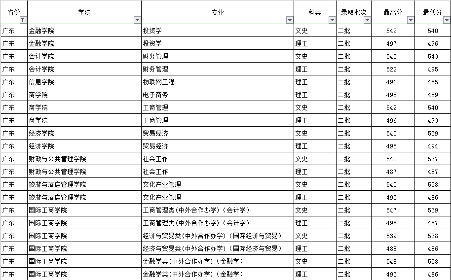 云南財(cái)經(jīng)大學(xué)2018年廣東省錄取情況一覽表