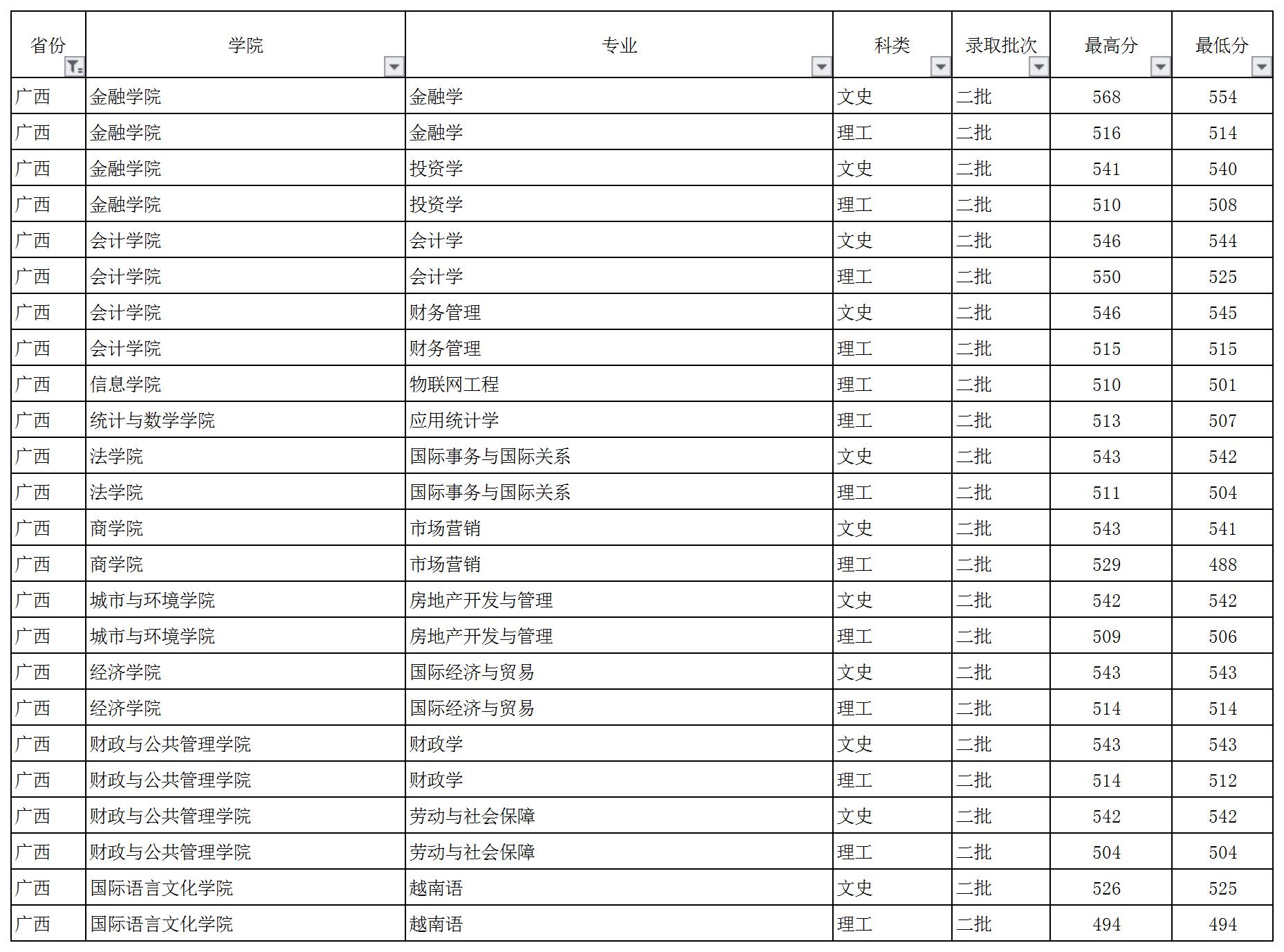云南財(cái)經(jīng)大學(xué)2018年廣西壯族自治區(qū)錄取情況一覽表