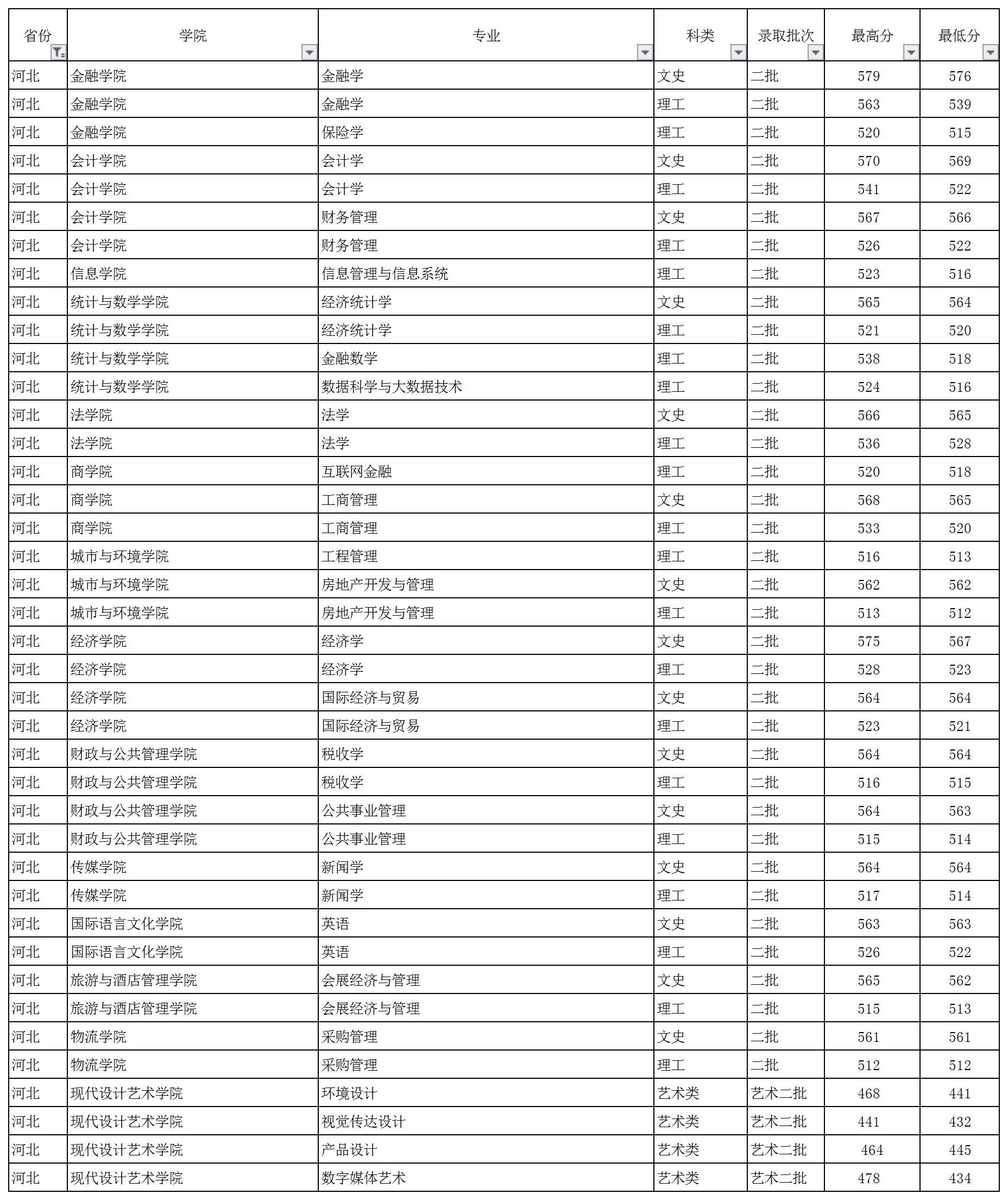 云南財經(jīng)大學2018年河北省錄取情況一覽表