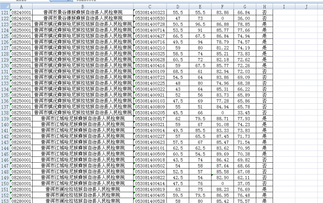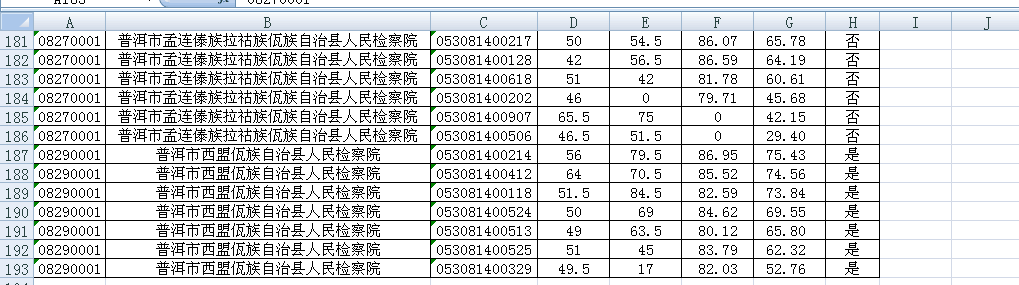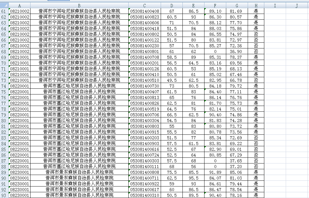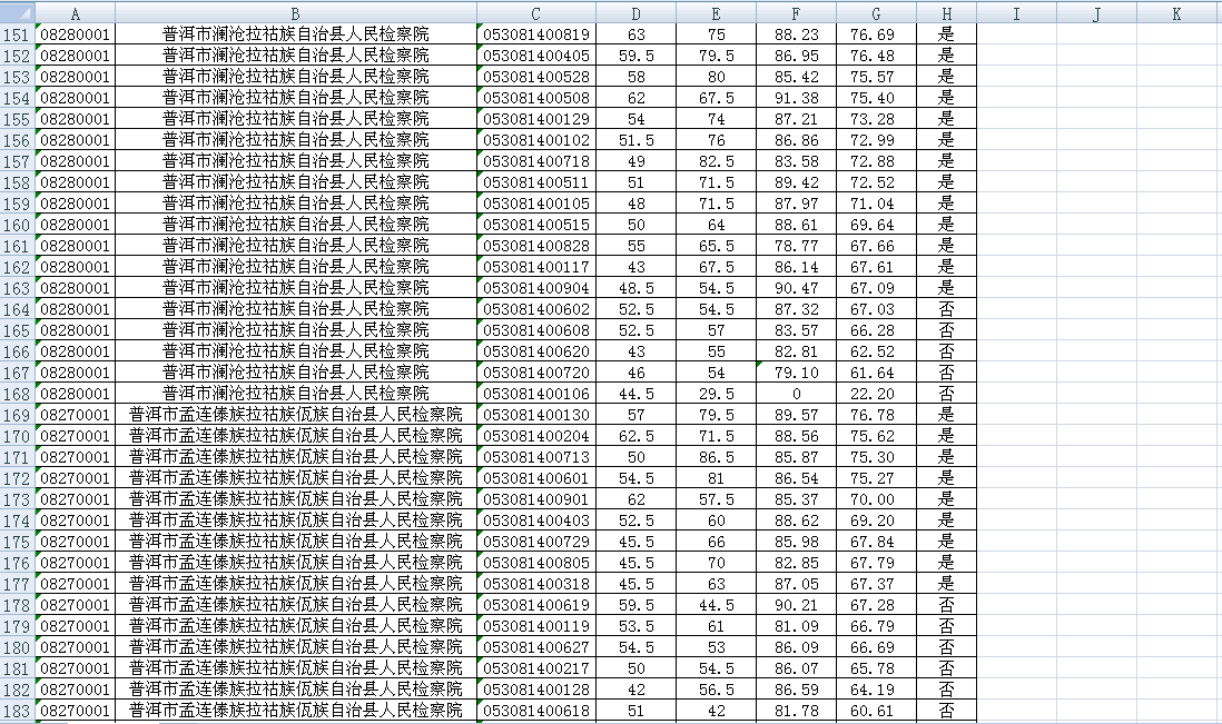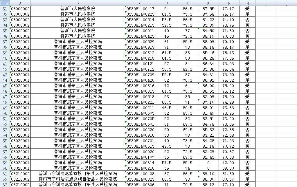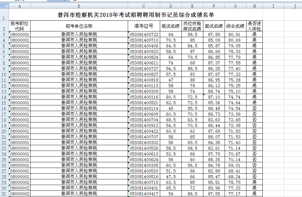 普洱市檢察機關2018年考試招聘聘用制綜合成績公告