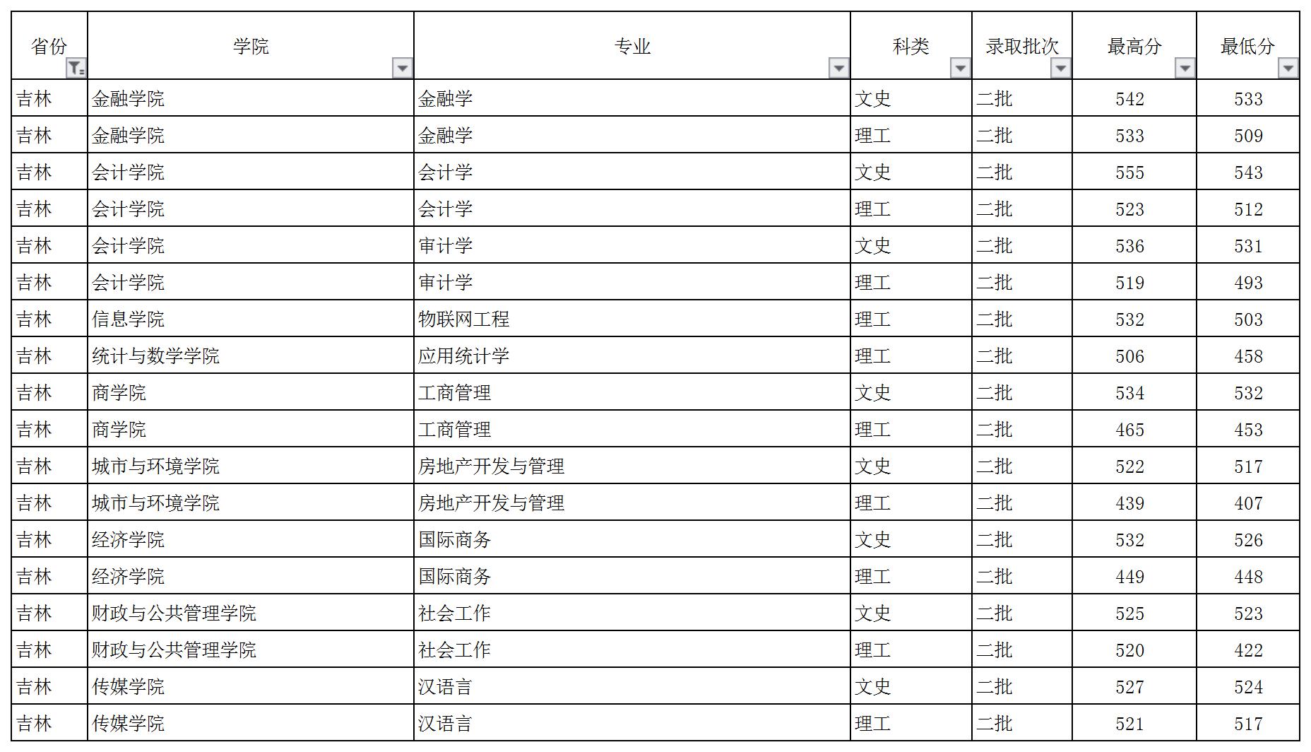 云南財(cái)經(jīng)大學(xué)2018年吉林省錄取情況一覽表