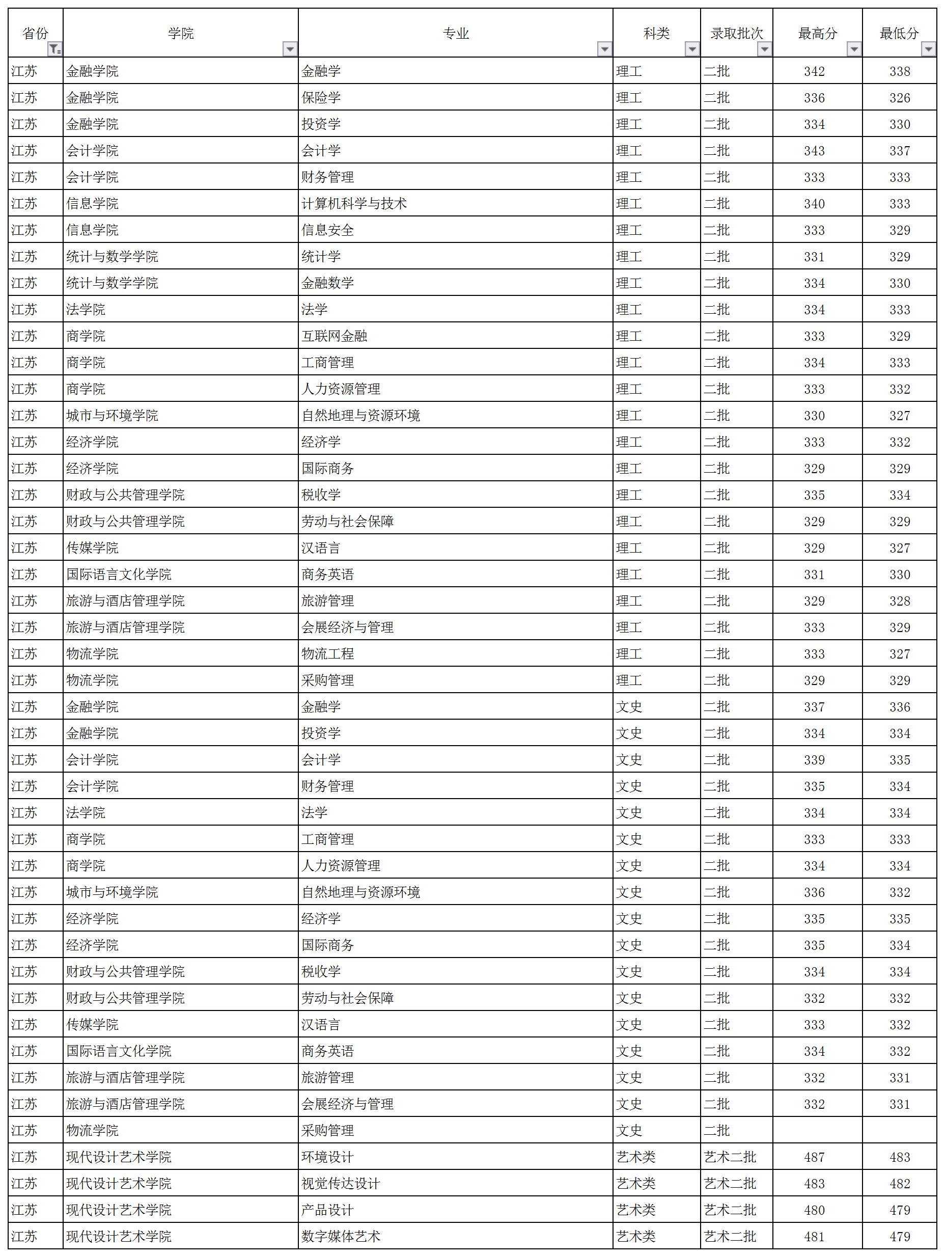 云南財經(jīng)大學(xué)2018年江蘇省錄取情況一覽表