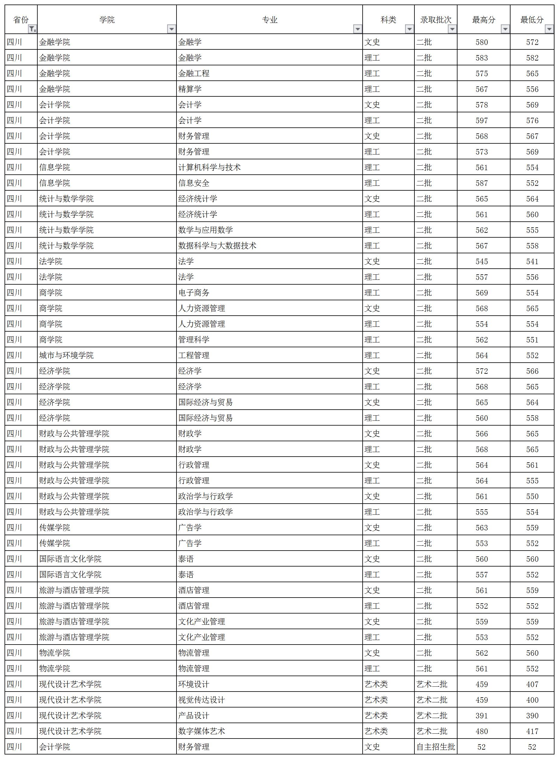 云南財(cái)經(jīng)大學(xué)2018年四川省錄取情況一覽表