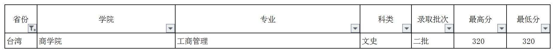 云南財經(jīng)大學2018年臺灣錄取情況一覽表