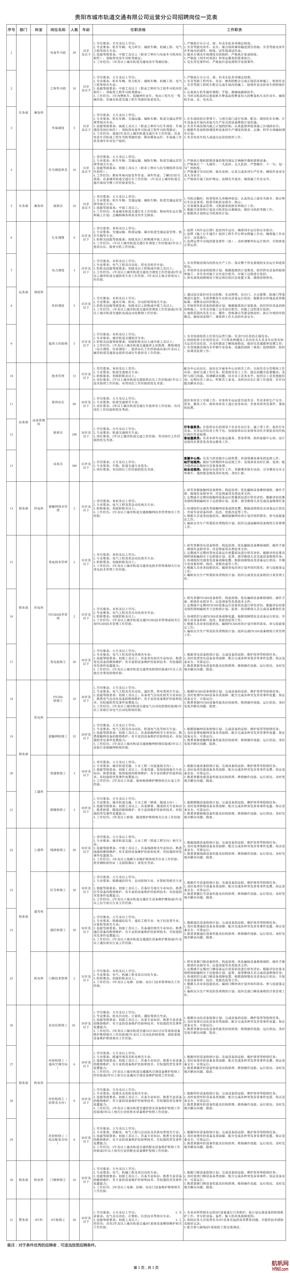 招聘的崗位及任職資格詳見(jiàn)附件《貴陽(yáng)市城市軌道交通有限公司運(yùn)營(yíng)分公司招聘崗位一覽表》