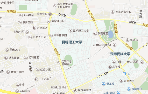 5.自駕車到達(dá)呈貢校區(qū)。市區(qū)沿彩云路直行,或者昆玉高速“聯(lián)大街”口下,從聯(lián)大街轉(zhuǎn)入彩云路,彩云南路左轉(zhuǎn)進(jìn)入景明南路。學(xué)校正門位于景明南路,側(cè)門位于聚賢街。