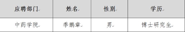 我校2018年第二批公開招聘事業(yè)編制高層次人才工作經(jīng)報(bào)名、資格審查、部門面試、學(xué)校面試和體檢等程序,現(xiàn)將季鵬章博士作為擬聘用人選進(jìn)行公示。季鵬章博士基本情況如下: