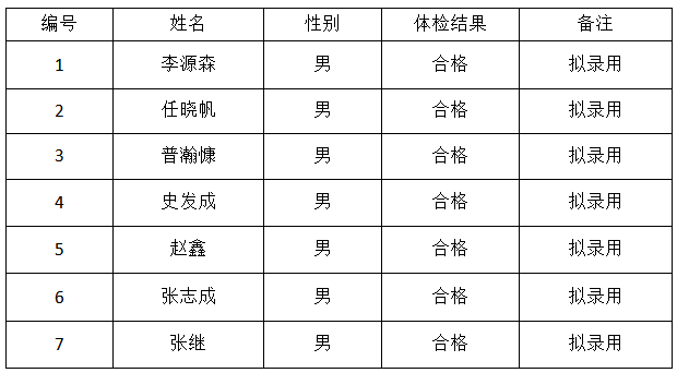 公開(kāi)招聘通海縣安全生產(chǎn)監(jiān)督管理局輔助服務(wù)工作人員體檢環(huán)節(jié)于2019年1月28日,按公告要求條件完成,現(xiàn)將擬錄用人員名單公示,公示期為7個(gè)工作日。公示期間,如對(duì)人選有異議,請(qǐng)及時(shí)向云南辰信人力資源管理咨詢有限公司通海分公司反映。