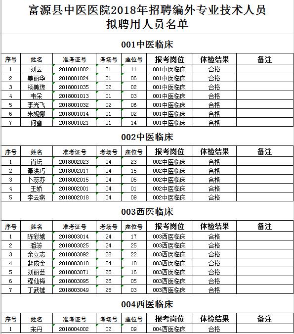 曲靖市富源縣中醫(yī)醫(yī)院2018年招聘編外人員擬聘名單