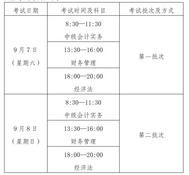 中級資格考試于2019年9月7日—8日舉行,共兩個批次。