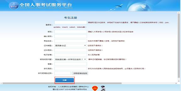 點擊“注冊”按鈕,進入考生注冊頁面,如下圖所示:
