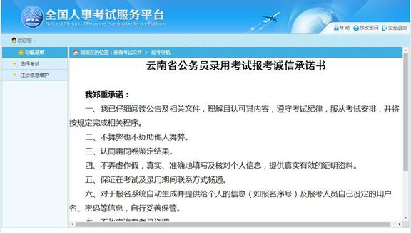 點擊“接受”按鈕,進入查看考生承諾書的頁面,如下圖所示: