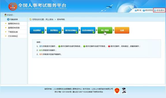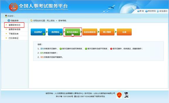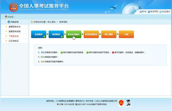 通過點擊“確認”按鈕,提示確認成功后跳轉到報考流程頁面,則完成填報信息操作。如下圖所示: