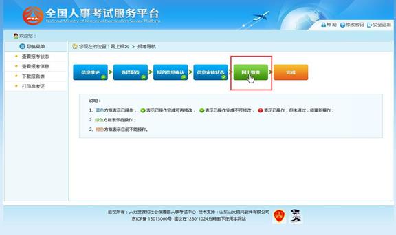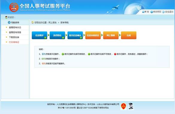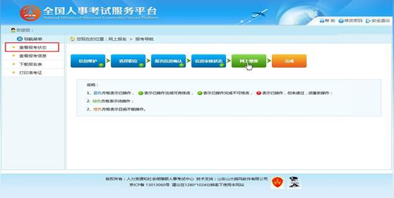選擇相應的職位,點擊“保存”按鈕,提示保存成功,跳轉到報考流程頁面,如下圖所示: