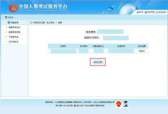 通過審核的考生可以進行網(wǎng)上繳費,點擊報考流程中“網(wǎng)上繳費”選項,可以進入網(wǎng) 上繳費的頁面,如下圖所示: