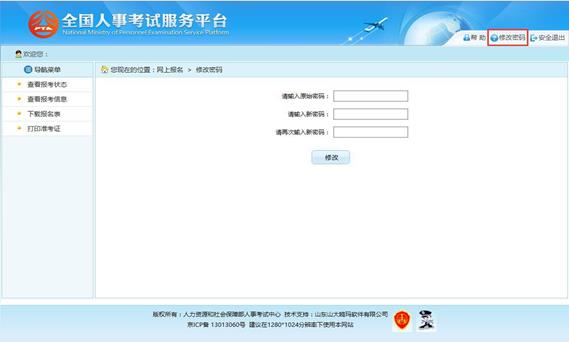 在該界面可以對考生的登錄密碼進行修改。
