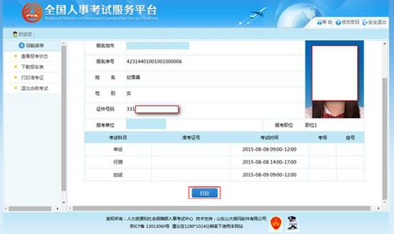 1.2.7.3 準考證打印