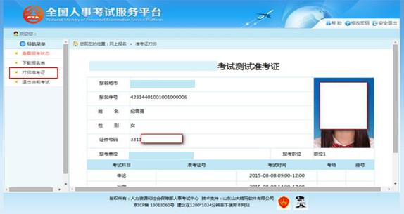 通過點擊系統(tǒng)導航菜單的“打印準考證”選項,可進入準考證打印頁面,如下圖所 示: